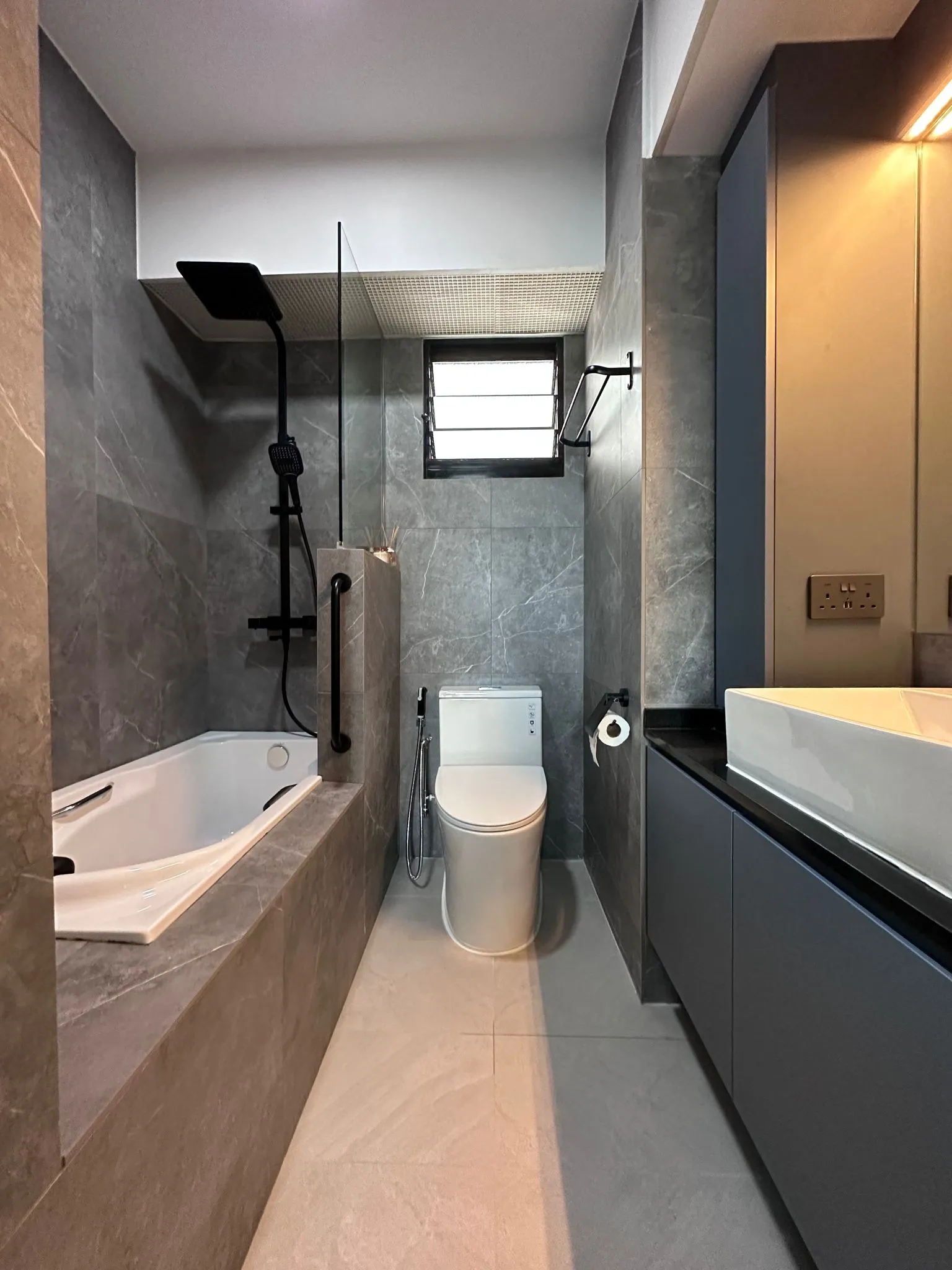 Toilet and Kitchen transformation at Havelock Road! We’re thrilled to reveal the makeover of this 3-room BTO’s kitchen and toilet! But the real gem of this renovation? The luxurious bathtub in the newly revamped toilet! Say goodbye to stress as you indulge in soothing baths in your very own spa-like haven